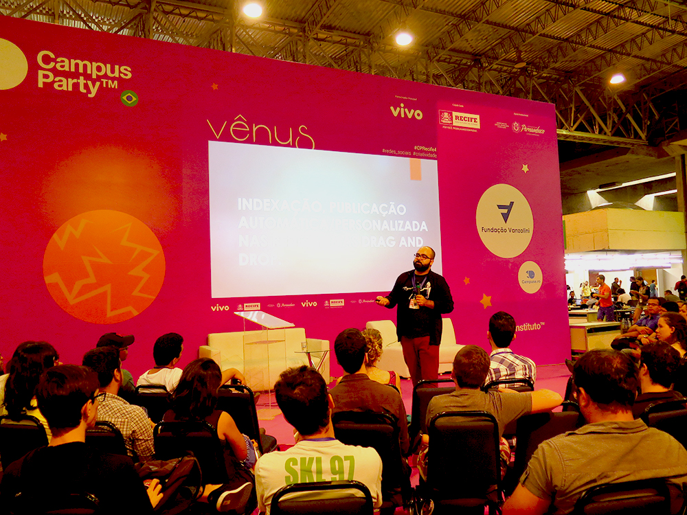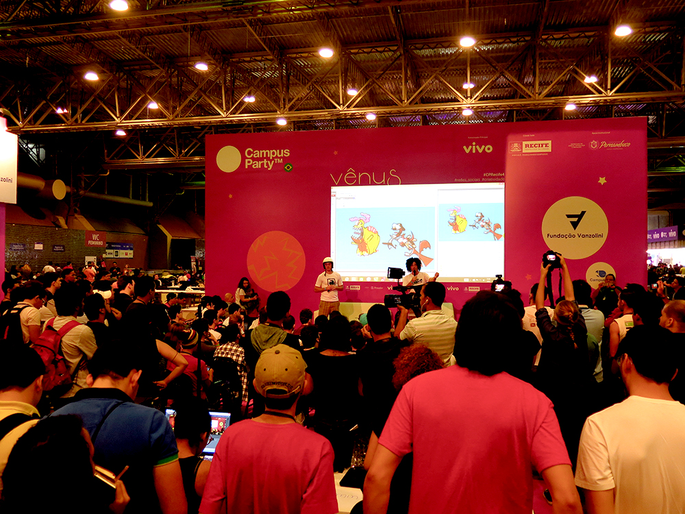 O Palco Vênus, com co-curadoria de Leonardo Leitão, contou com palestras que chamaram atenção e deixaram os ouvintes vidrados. Os irmãos Piologo falaram sobre o character design do jogo “Mundo Canibal Apocalipse: o pior jogo do mundo” e contaram com o apoio de muitos campuseiros que fizeram interações importantes durante a apresentação. Outro destaque desse palco, foi a palestra de Ricardo Oliveira, jornalista e mestre em Comunicação, que abordou temáticas de conteúdo e deu dicas de plugins, para wordpress, design para layouts e até apresentações de power point, além de outras táticas essenciais para criar um conteúdo com responsabilidade e mais praticidade.